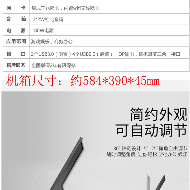 RAMBO/Geforce 930A 2G/WIFI/藍(lán)牙/1080P攝像頭/Q170主板/180W 92plus電源/內(nèi)置音箱/可放平式多功能底座/USB有線(xiàn)光電鍵鼠/6個(gè)USB3.0接口/1個(gè)串口/DP輸入輸出二合一接口/耳機(jī)耳麥二合一接口/ ?