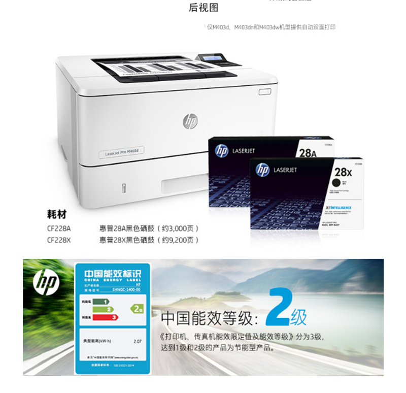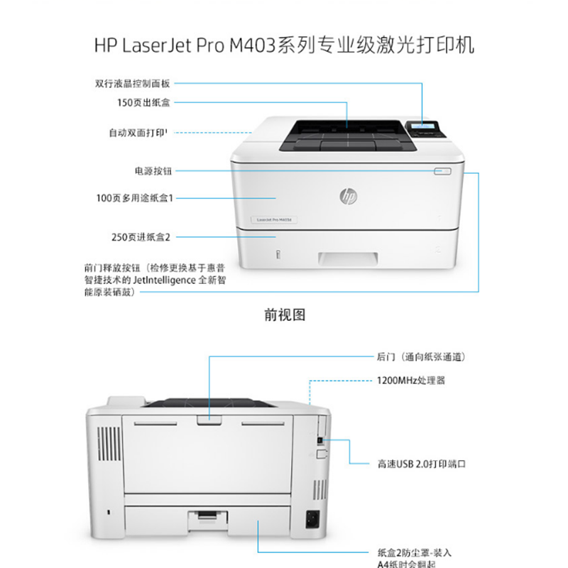 惠普(HP) M403d 黑白激光打印機 (USB,自動雙面)