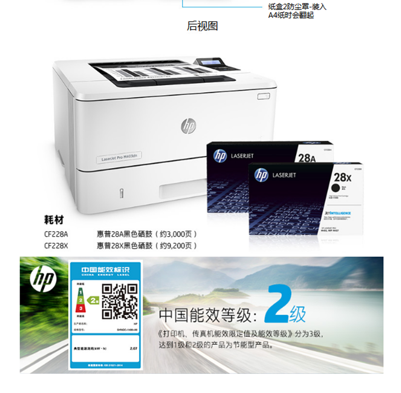 惠普(HP) M403n 黑白激光打印機 (網(wǎng)絡打印,手動雙面)