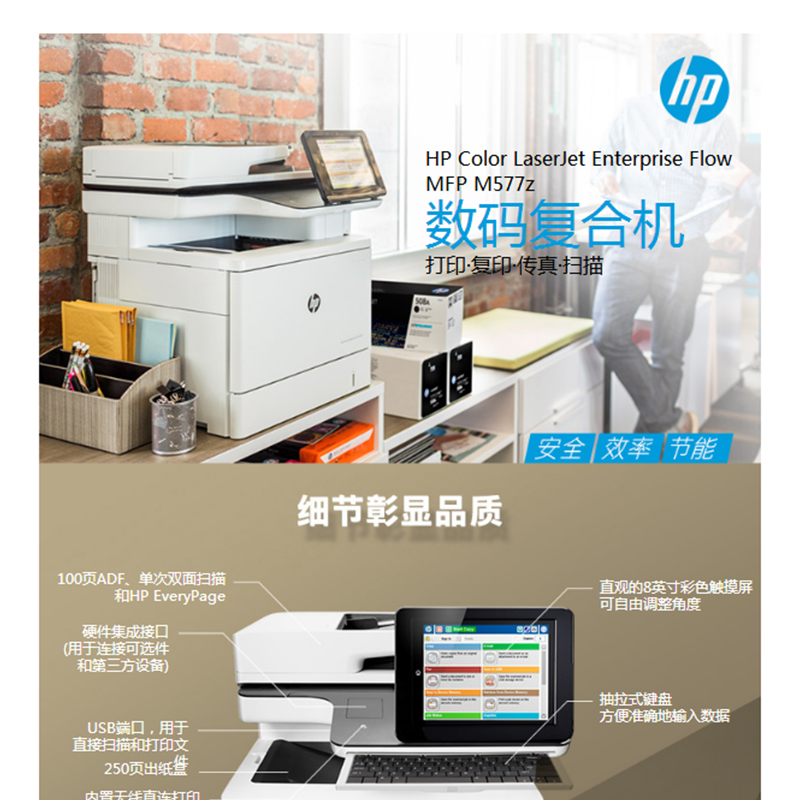 惠普(HP) MFP M577z 彩色數(shù)碼激光多功能一體機(jī) (4合1,無線,雙面)