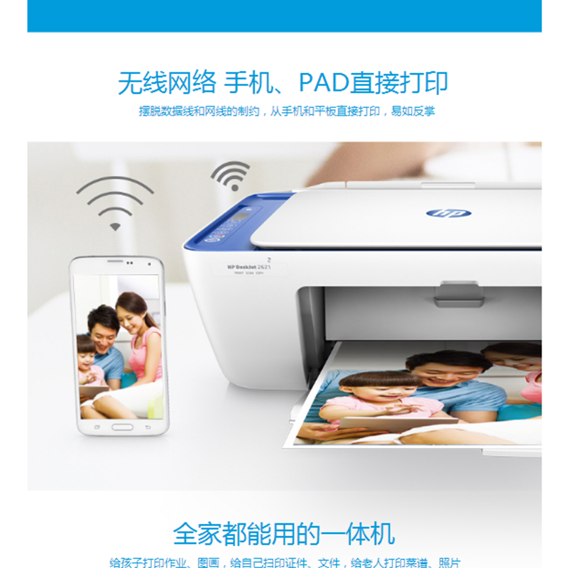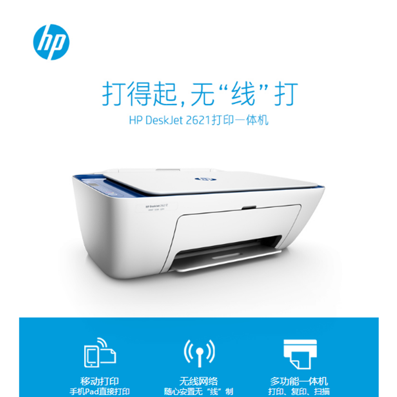 惠普(HP) DeskJet 2621 噴墨一體機(jī) (無線打印,3合1)
