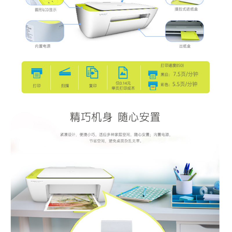 惠普(HP) DeskJet 2138 噴墨一體機 (惠省系列,3合1)
