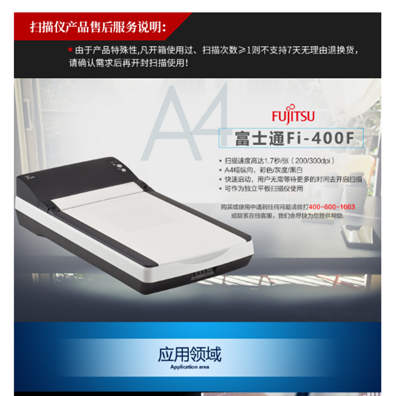 富士通(Fujitsu) fi-400F 短邊距平板掃描儀 (A4彩色文檔1.7秒/張)