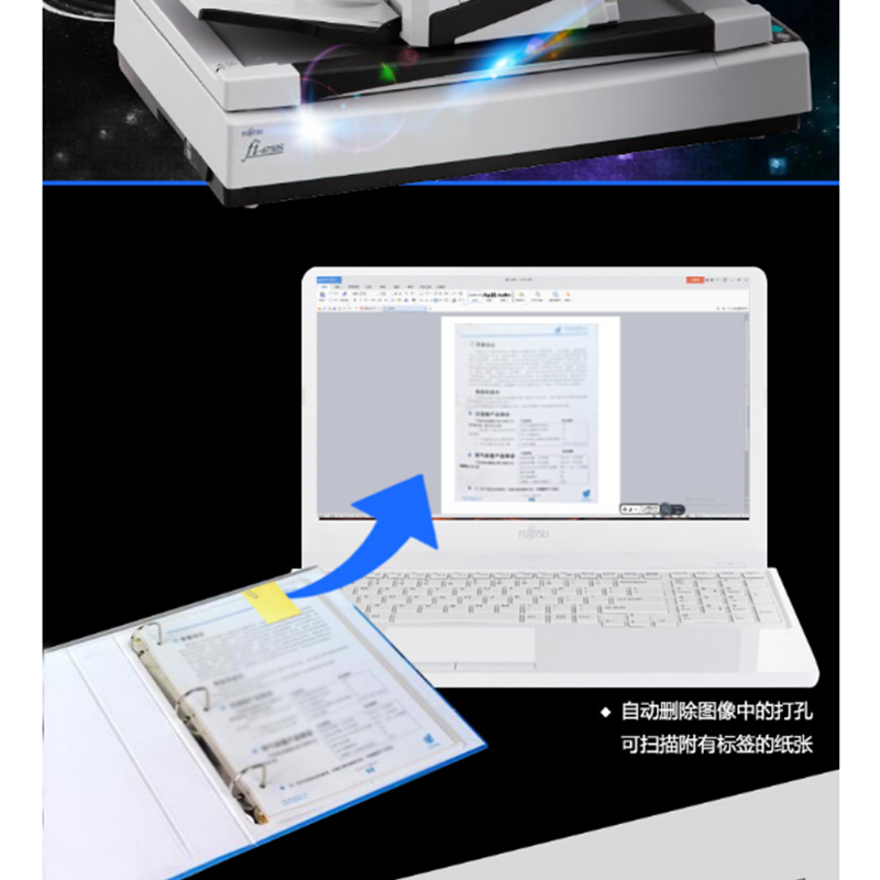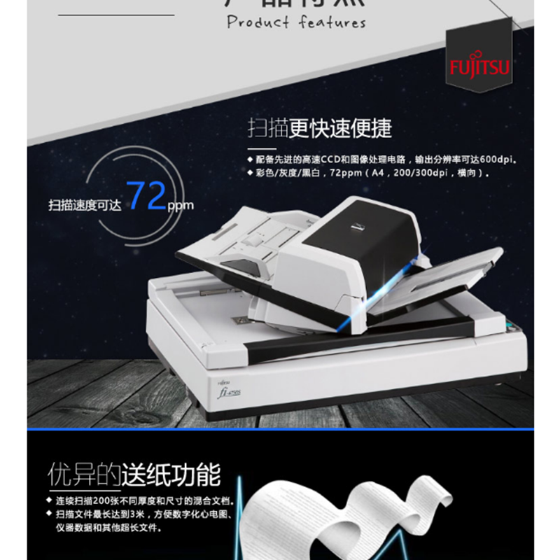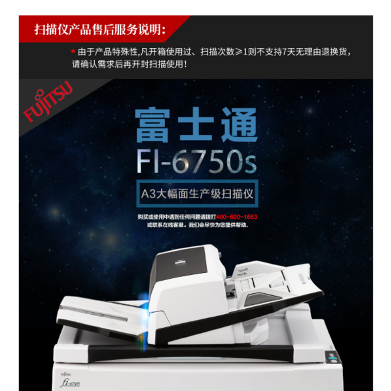 富士通(Fujitsu) Fi-6750S 平板+饋紙式掃描儀 高速雙面自動進紙 (72頁144面/分鐘)