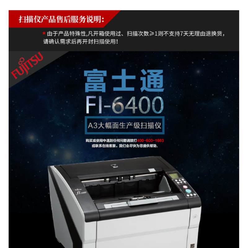 富士通(Fujitsu) Fi-6400 饋紙式掃描儀 高速雙面自動(dòng)進(jìn)紙 (100頁(yè)200面/分鐘)