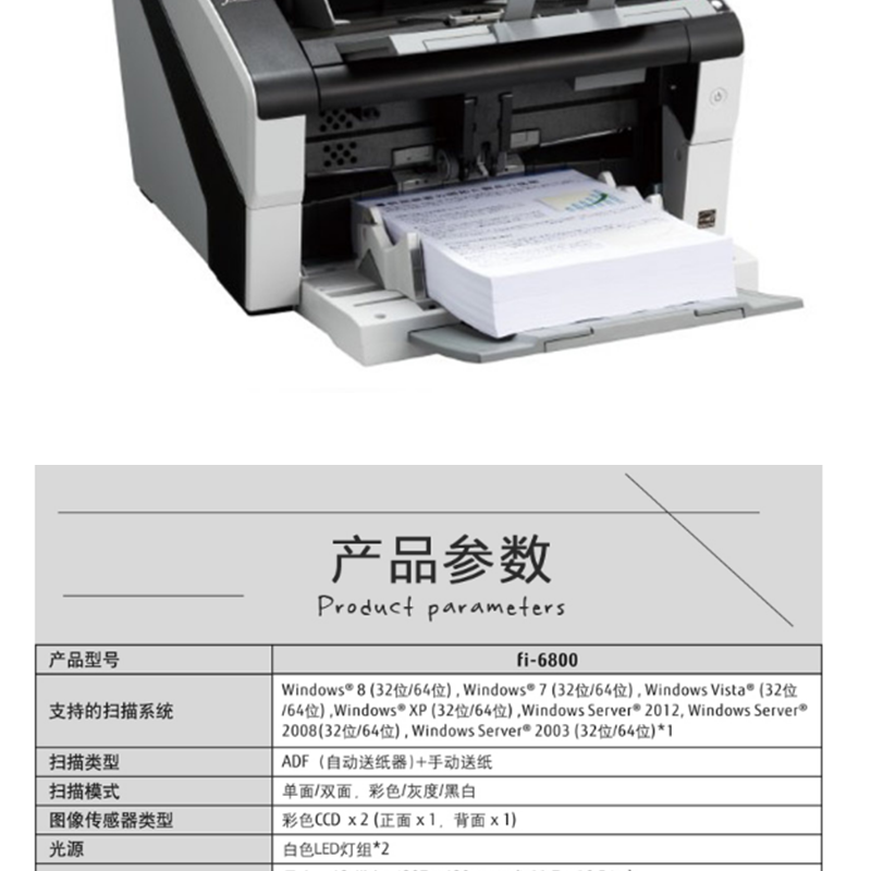 富士通(Fujitsu) Fi-6800 饋紙式掃描儀 高速雙面自動(dòng)進(jìn)紙 (130頁(yè)260面/分鐘)