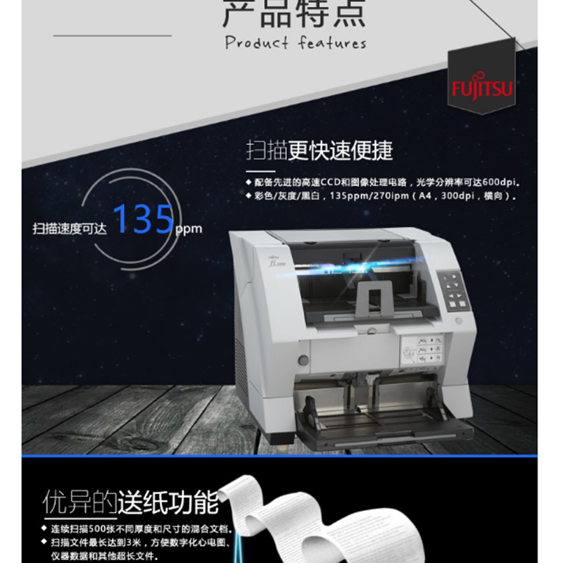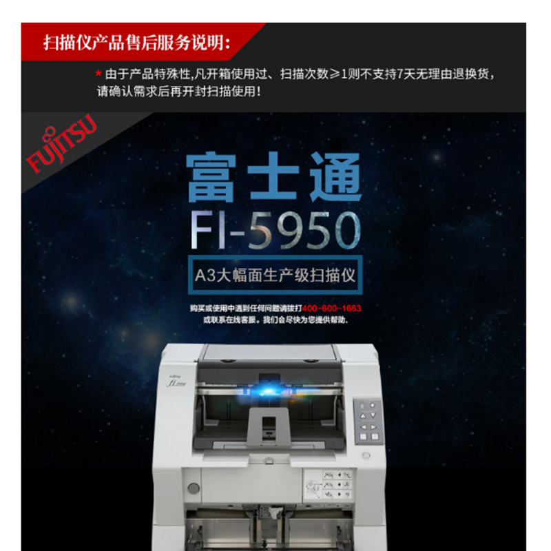 富士通(Fujitsu) Fi-5950 饋紙式掃描儀 高速雙面自動進紙 (135頁270面/分鐘)
