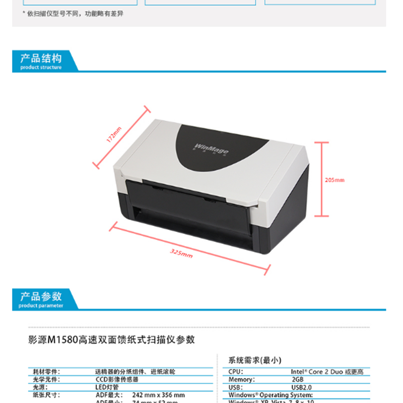 影源(WinMage) M1580 A4饋紙式掃描儀 高速文檔 雙面自動(dòng)進(jìn)紙 (50頁100面/分鐘)