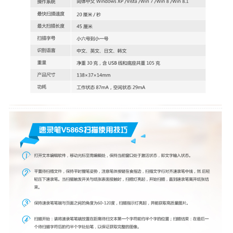 漢王(Hanvon) V586S 輕巧便攜式掃描筆 精準(zhǔn)識別中、英、數(shù)、日、韓 (性能版)