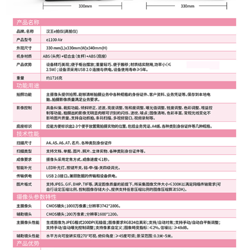 漢王(Hanvon) e1100 Air 高拍儀掃描儀 (A4幅面,1000萬像素,雙攝像頭)