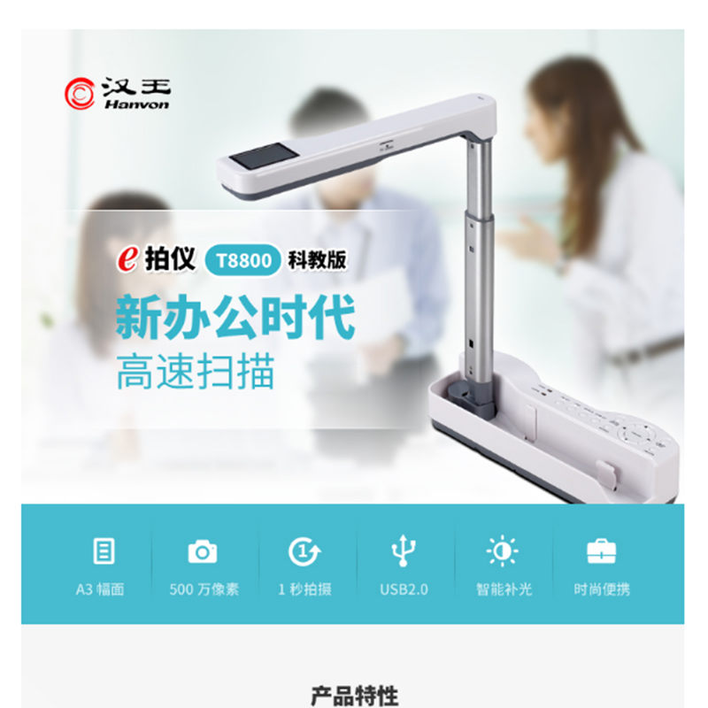 漢王(Hanvon) T8800 高拍儀掃描儀 視頻錄音可270°旋轉(zhuǎn)鏡頭 (A3幅面,500萬(wàn)像素)