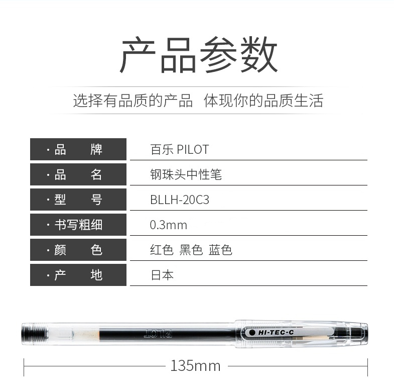 百樂(PILOT)BLLH-20C3-R 超細(xì)鋼珠中性筆啫喱筆 簽字筆(紅色0.3mm)