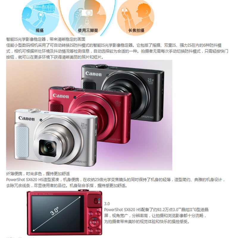 佳能(Canon) PowerShot 數(shù)碼 相機(jī)(SX620 HS 紅色)