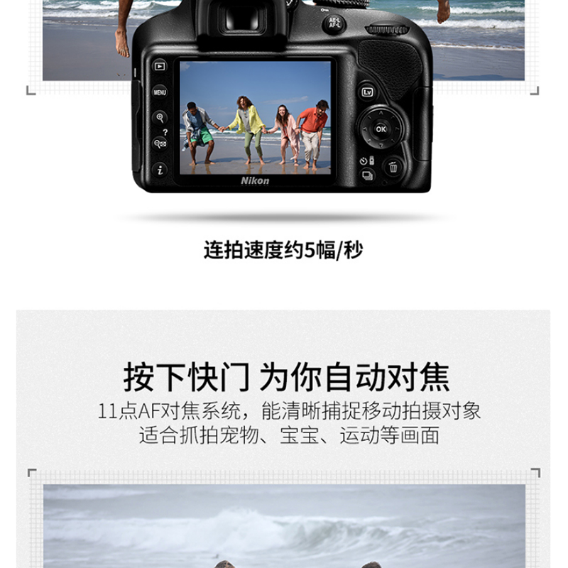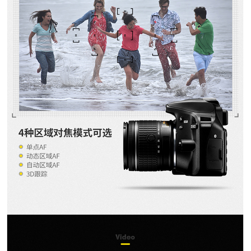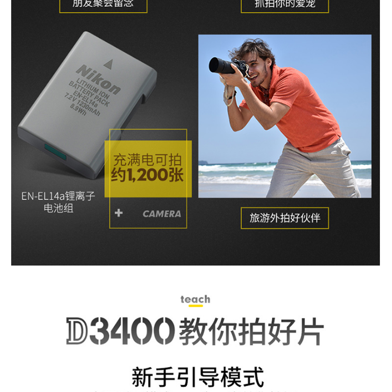 尼康(Nikon) D3400 入門單反數(shù)碼照相機 (AF-P DX 尼克爾 18-55mm f/3.5-5.6G VR防抖鏡頭套機)