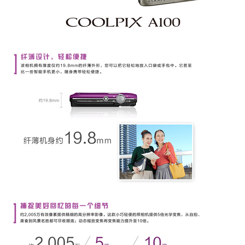 方便攜帶,2005萬像素, 2.7英寸屏, 5倍光學變焦 ,26mm廣角 ?