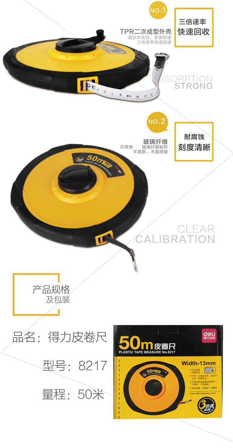 得力(deli) 8217 測量精準(zhǔn)變速皮卷尺/軟皮尺/工程測量尺 50M