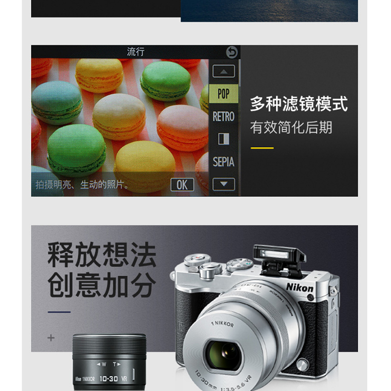 • 10-100mm f/4-5.6鏡頭套機(jī)銀色 10-100mm f/4-5.6鏡頭套機(jī)白色 J5+1 10-30mm f/3.5-5.6 PD鏡頭套機(jī)銀色