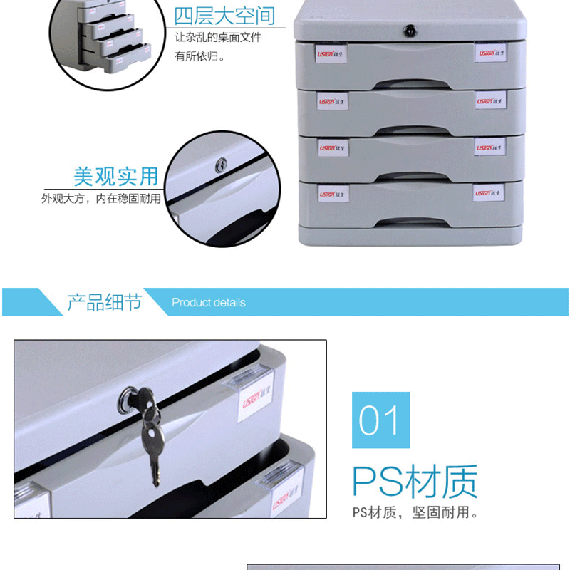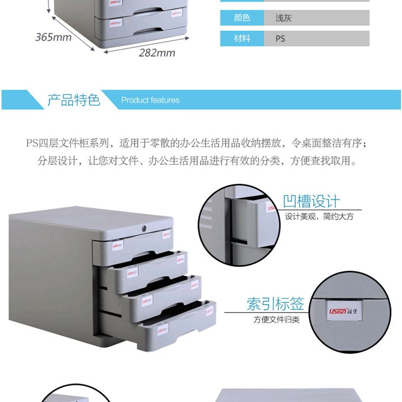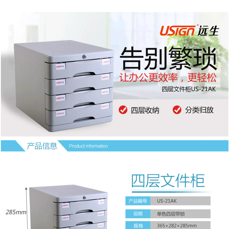 遠(yuǎn)生(USign) US-21AK 單色四層帶鎖文件柜 淺灰