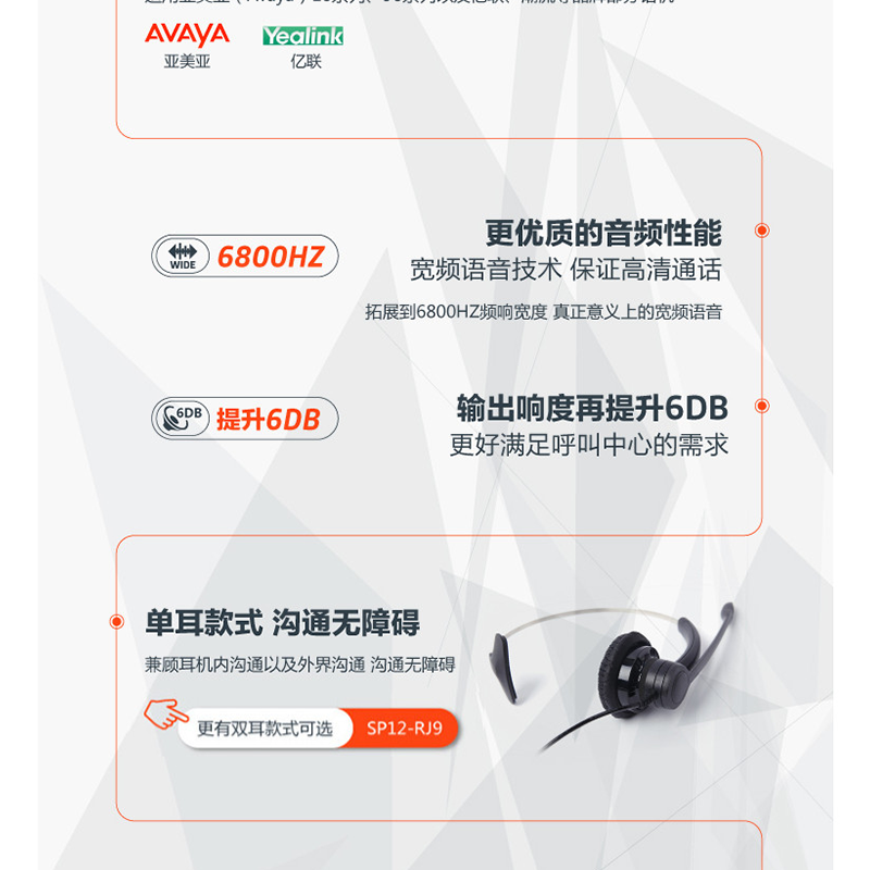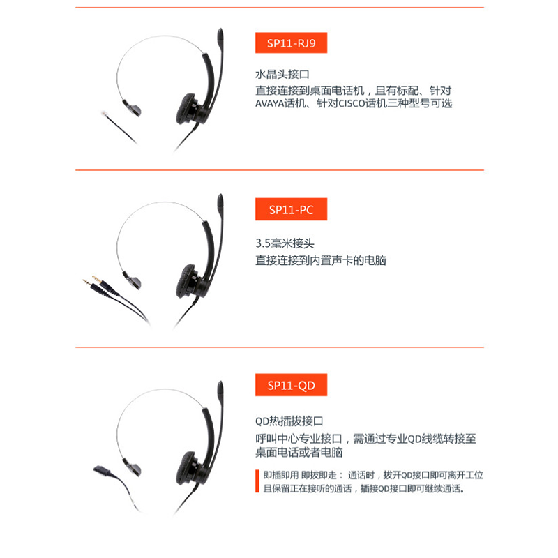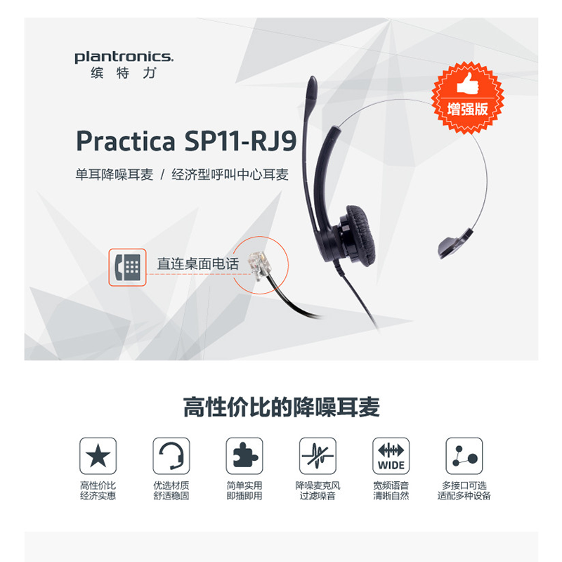 繽特力(Plantronics) SP11-RJ9 話務耳機/電話耳麥 (適用于華為/寶利通/北電等話機)