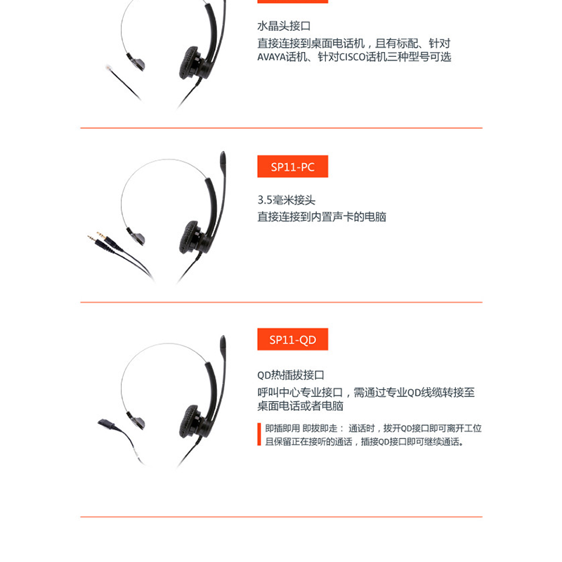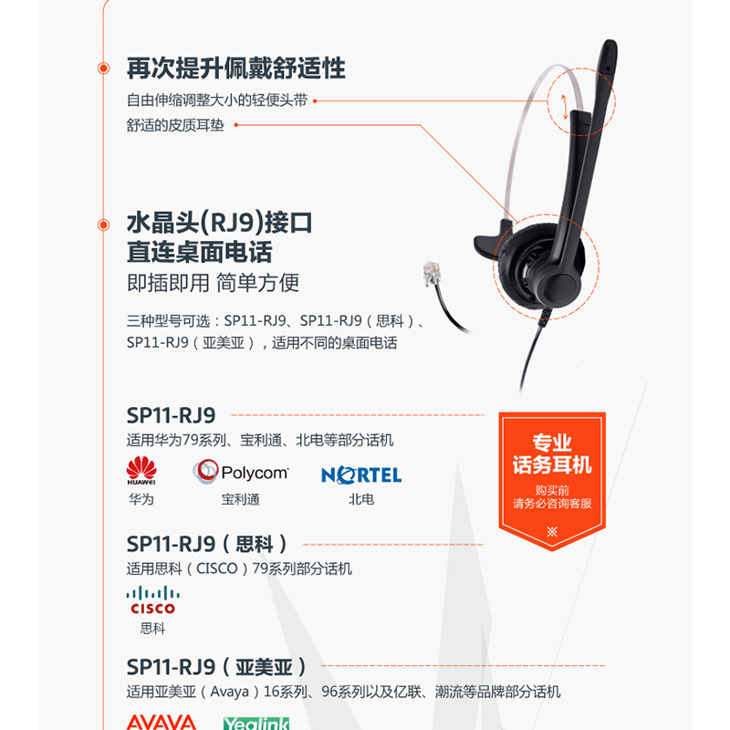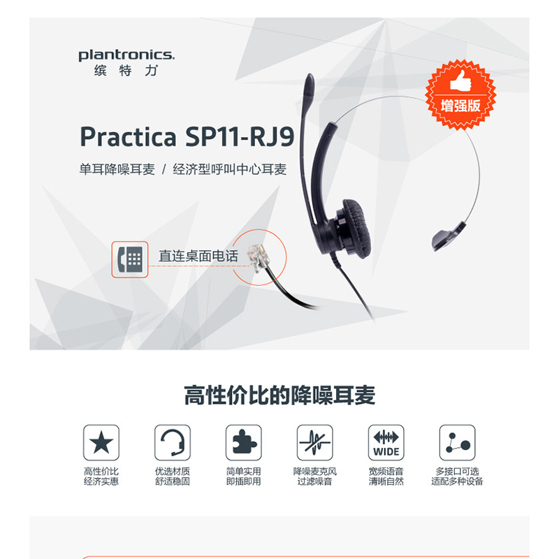 繽特力(Plantronics) SP11-RJ9(AVAYA) 話務(wù)耳機/電話耳麥 (適用于亞美亞/億聯(lián)等部分話機)