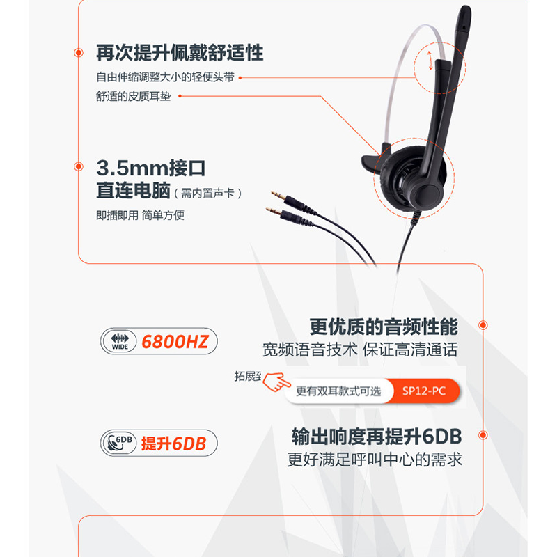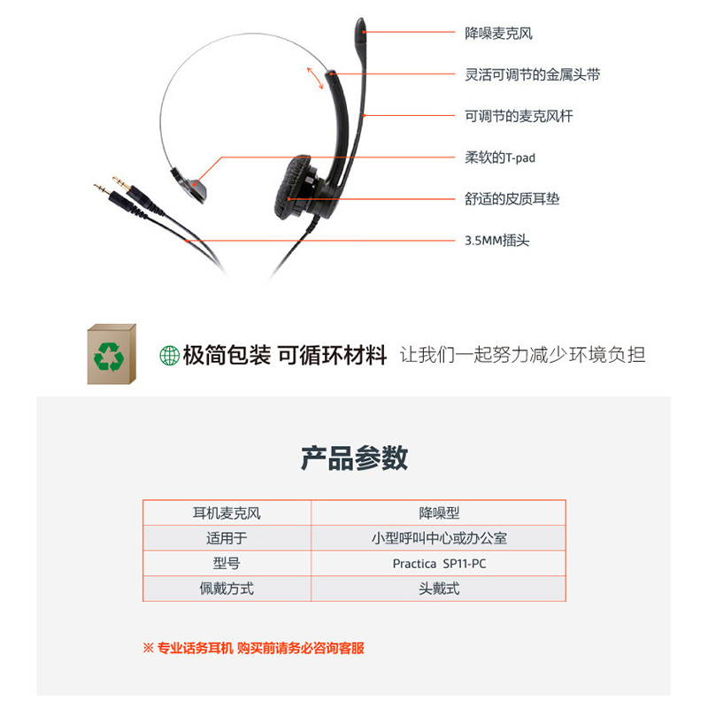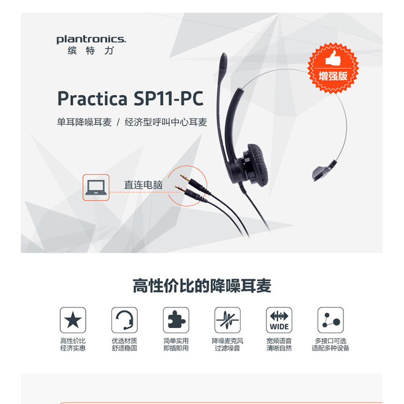 繽特力(Plantronics) SP11-PC 話務(wù)耳機(jī)/電話耳麥 (PC話務(wù))