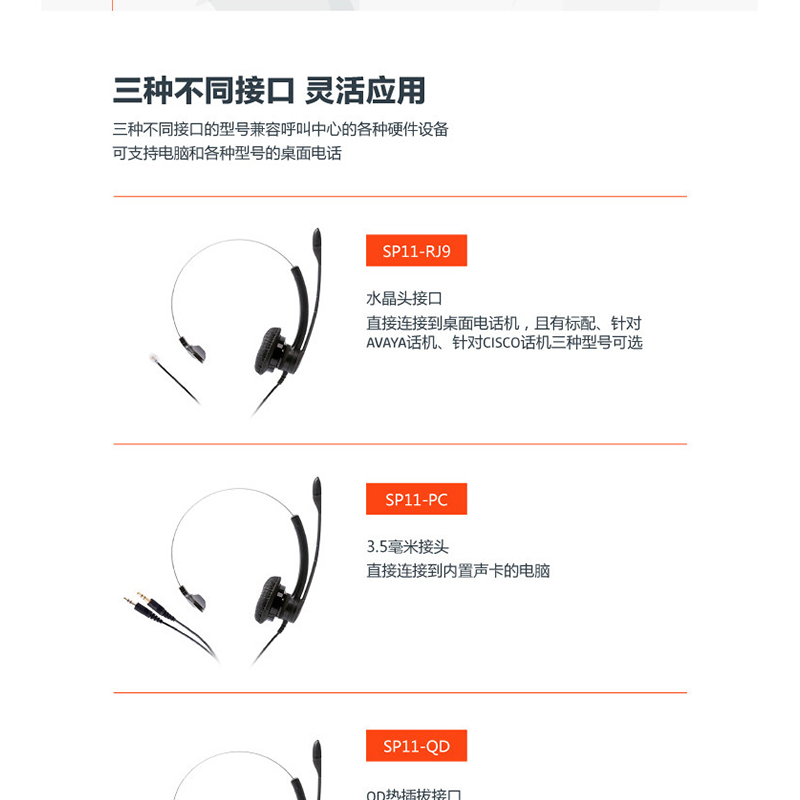 • 適用于華為/寶利通/北電等話機(jī) 適用于思科79系列話機(jī) 適用于亞美亞/億聯(lián)等部分話機(jī) PC話務(wù) QD話務(wù)