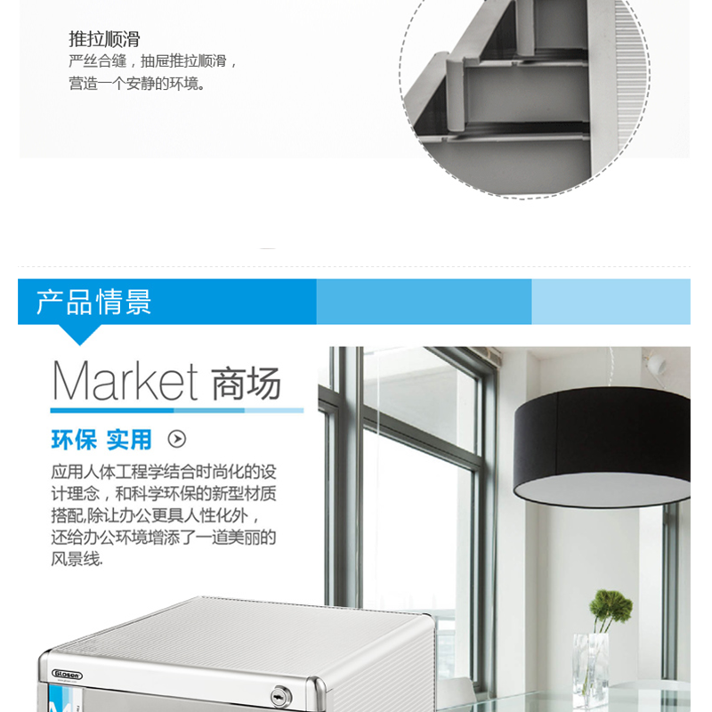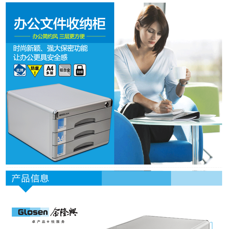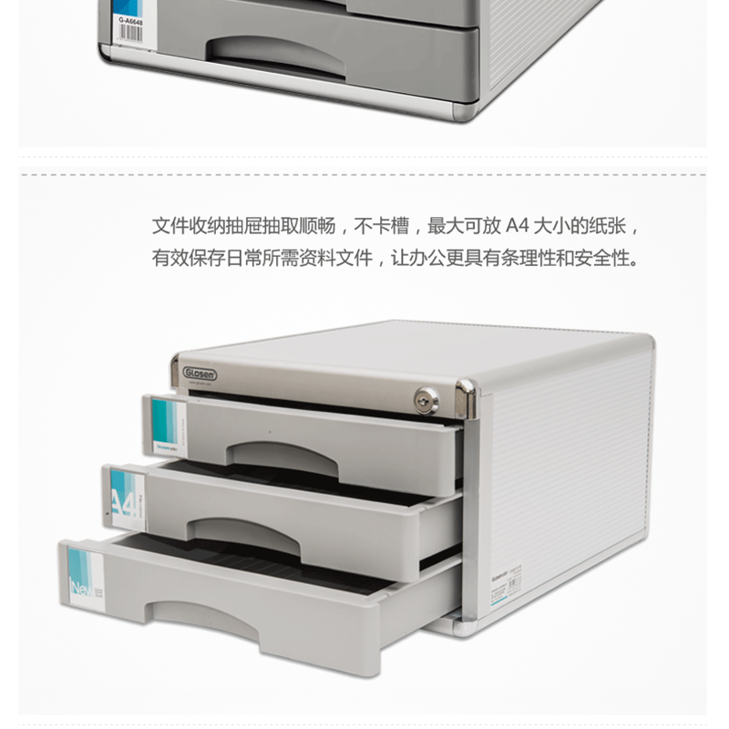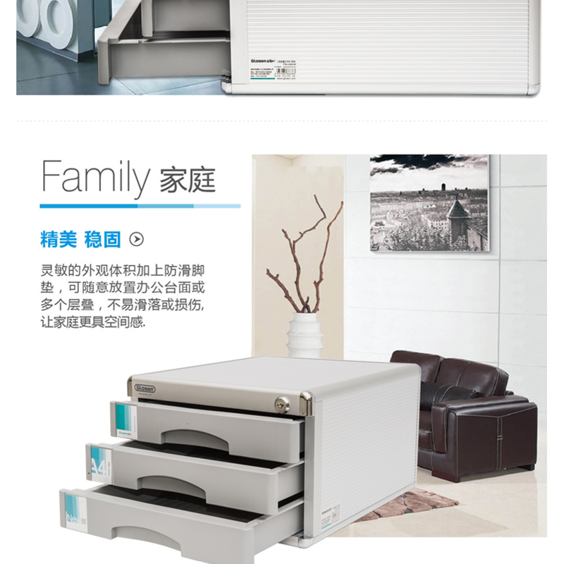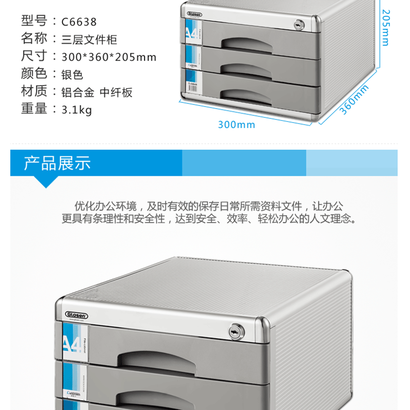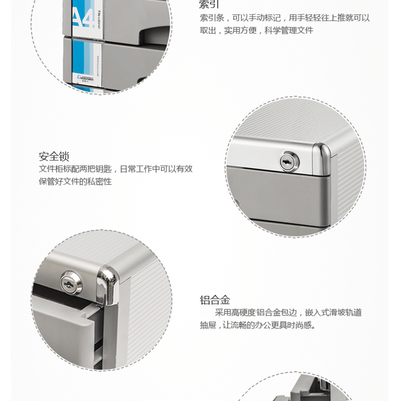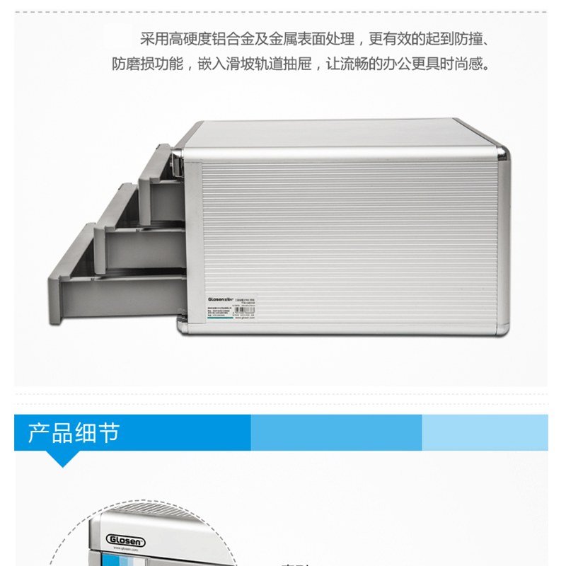 金隆興(Glosen) C6638 鋁合金桌面文件抽屜柜收納盒A4資料柜三層文件柜 帶鎖