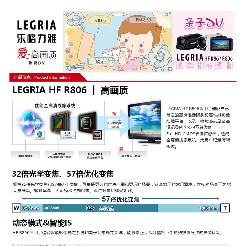 佳能(Canon) HF R86 親子DV 攝像機 (黑色 R86)