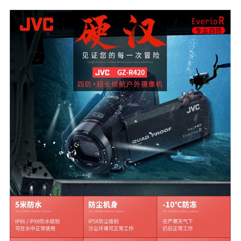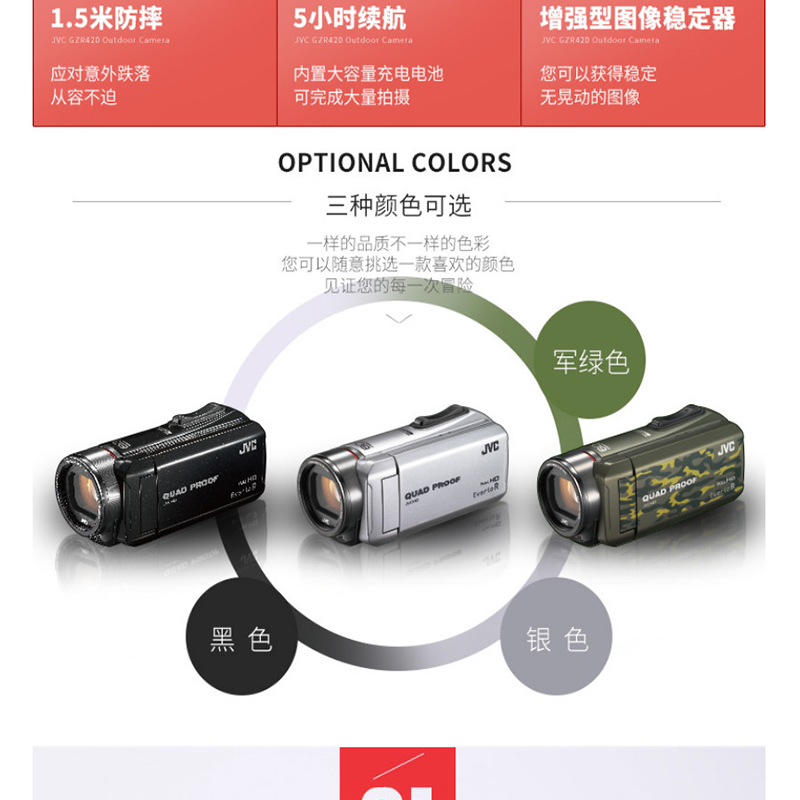 JVC(杰偉世) GZ-R420 SAC四防高清攝像機(jī)DV 家用戶外運(yùn)動(dòng) (銀色 可擴(kuò)展鏡頭)