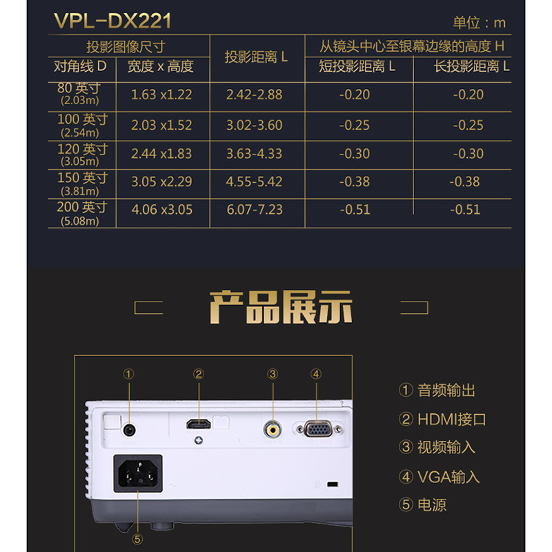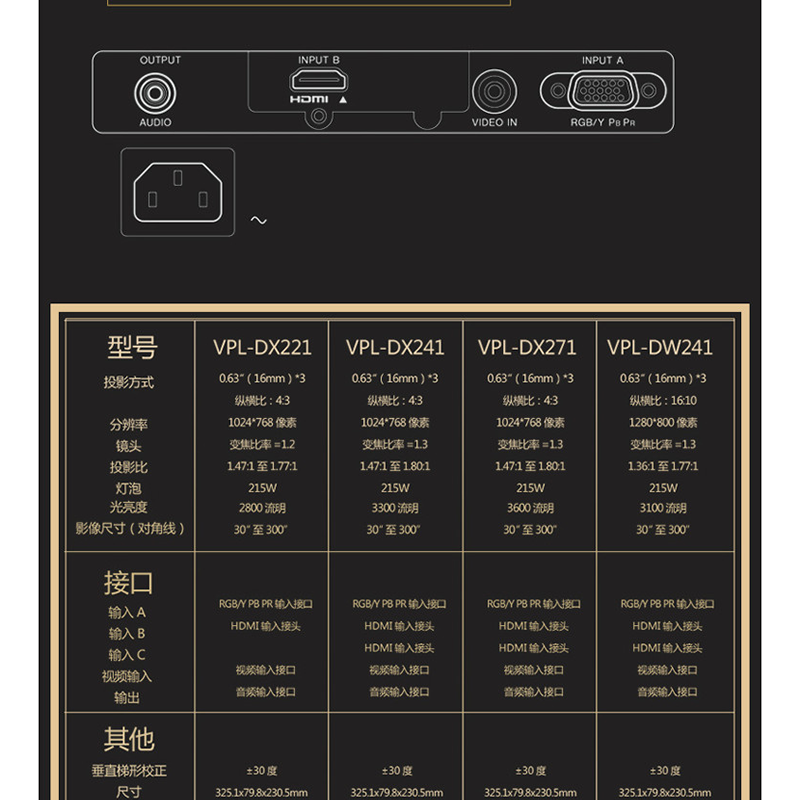 索尼(SONY) DX221 辦公投影儀 投影機(jī) (標(biāo)清X(qián)GA,2800流明)