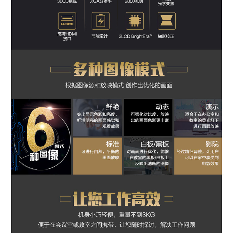 3LCD技術(shù) 7種圖像模式 10秒快速關(guān)機(jī) 信號(hào)源輸入自動(dòng)啟動(dòng) ?