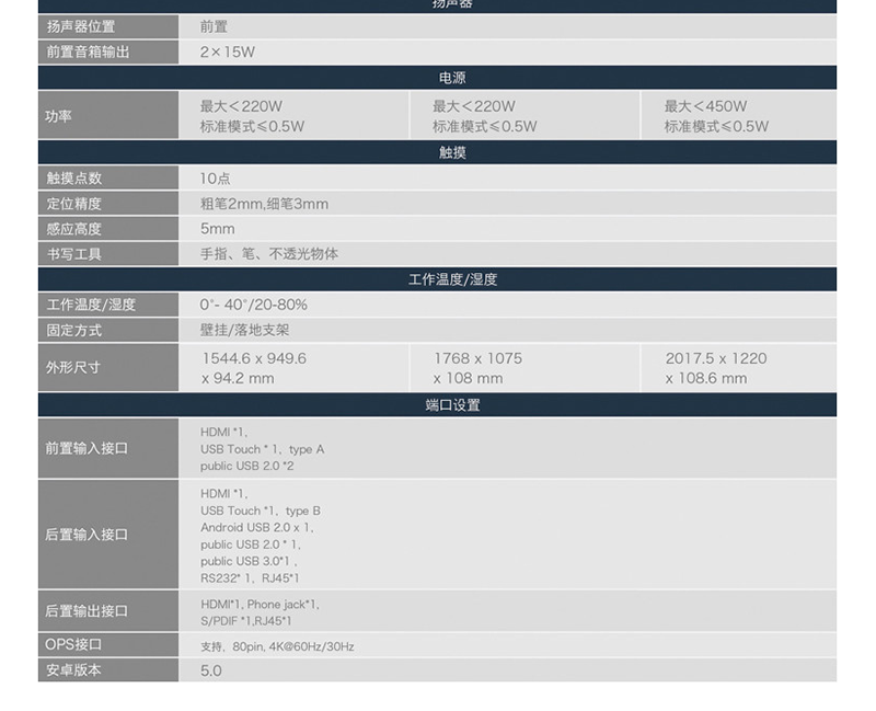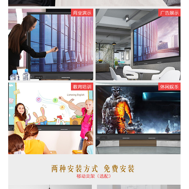 屏幕分辨率3840*2160,10點(diǎn)紅外觸控,鋼化玻璃,壁掛支架,安卓系統(tǒng),2G內(nèi)存,8G存儲 ?