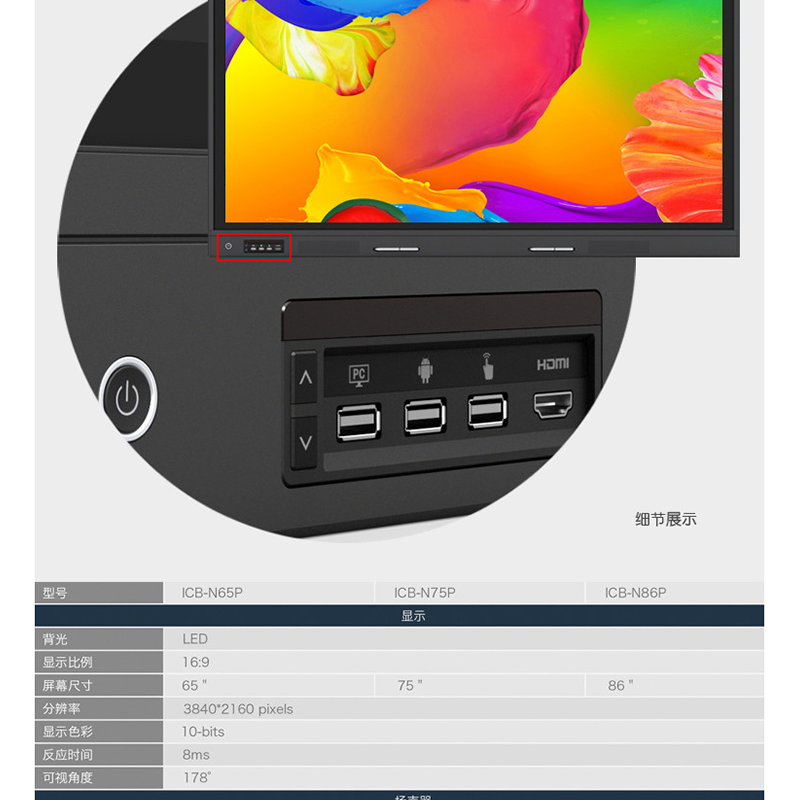 鴻合(HiteVision) ICB-N65P 會議平板 (65英寸,4K屏體)