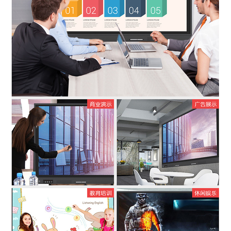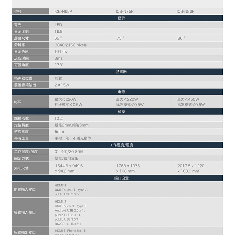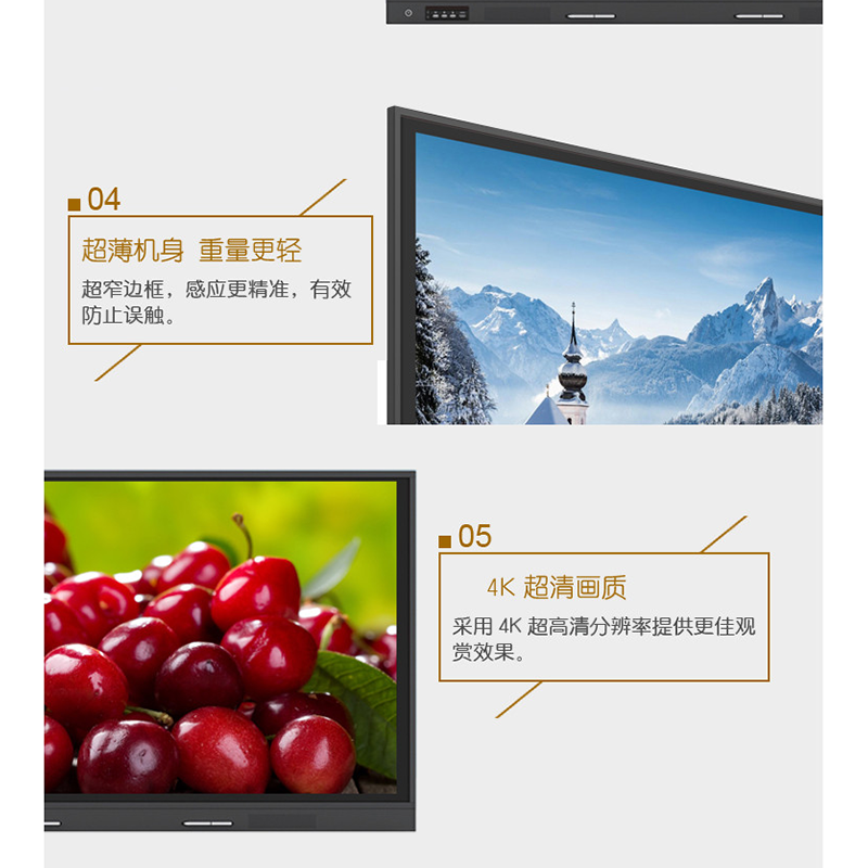 • 55英寸,2K屏體 65英寸,4K屏體 75英寸,4K屏體 86英寸,4K屏體