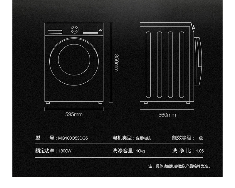 美的(Midea) 樂(lè)尚系列滾筒洗衣機(jī)(MG100Q53DG5)