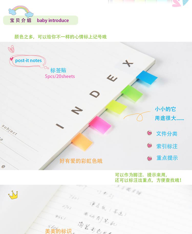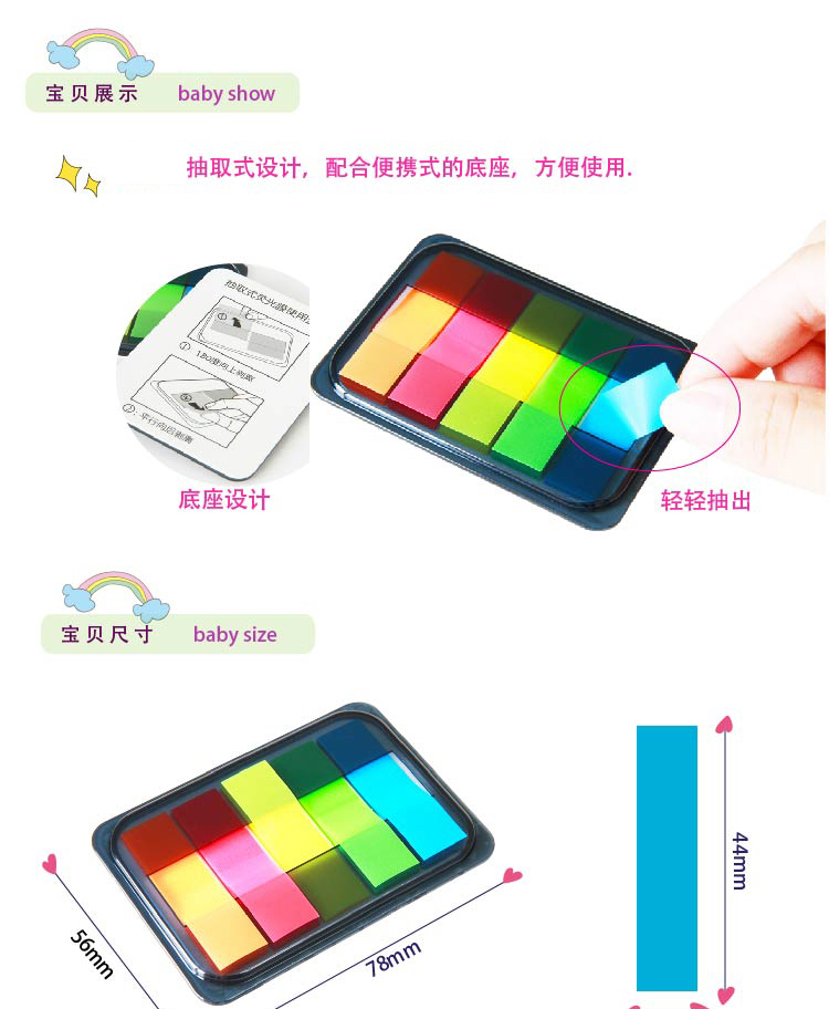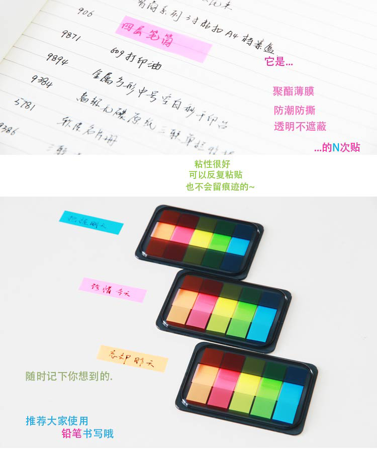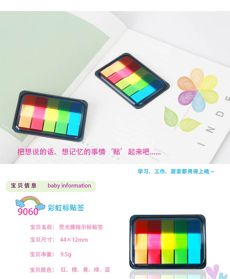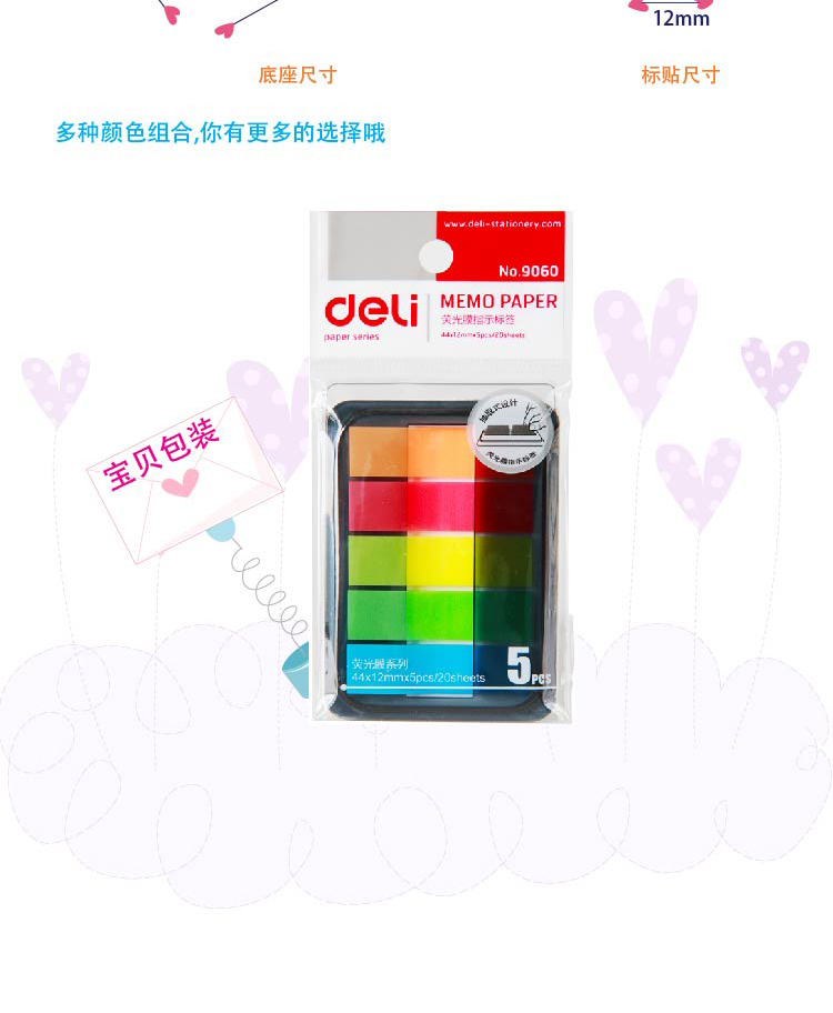 得力(deli) 9060 熒光指示標簽/便簽條/便利貼/百事貼 44*12mm 5色*20張