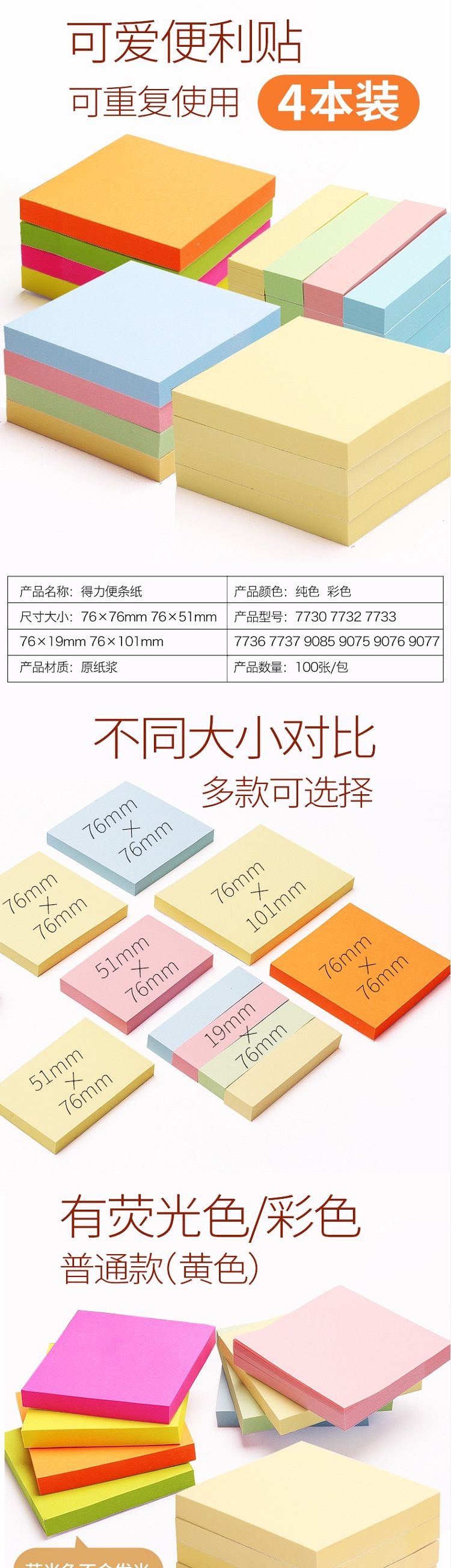 得力(deli) 7151 彩色系列百事貼/便簽紙 4色裝 76*76mm