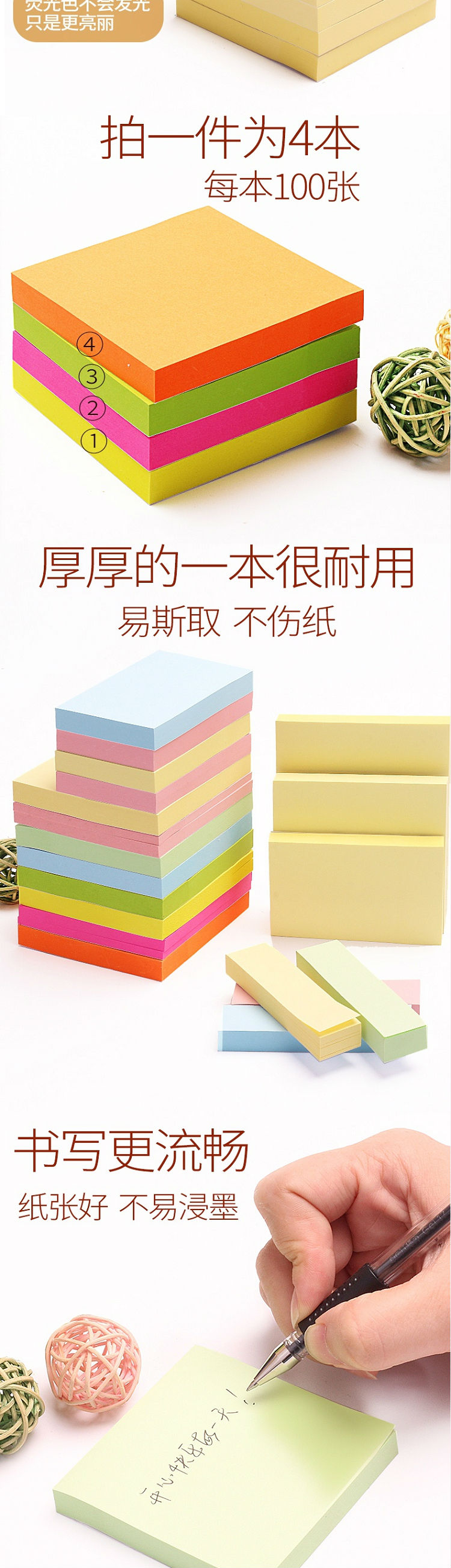 得力(deli) 9085 熒光紙百事貼/便條紙76×76mm 12本裝