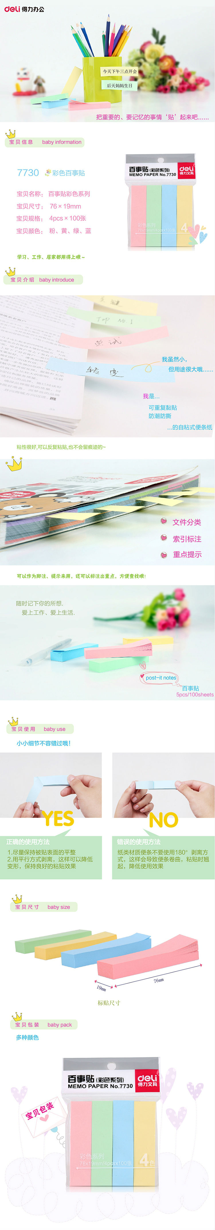 得力(deli) 7730 百事貼/便條紙 76*19mm 4色*100張/包