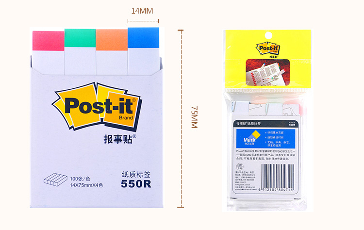 3M(Post-it) 550R 報事貼/指示標簽/分頁標簽 14×75mm 100張*4色/包