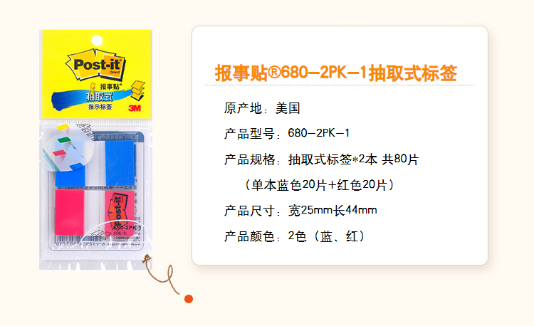 3M(Post-it) 680-2PK-1 透明指示標(biāo)簽/報(bào)事貼 紅藍(lán) 20張*2色/包