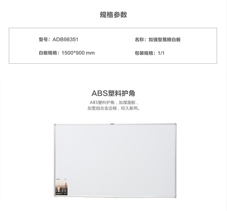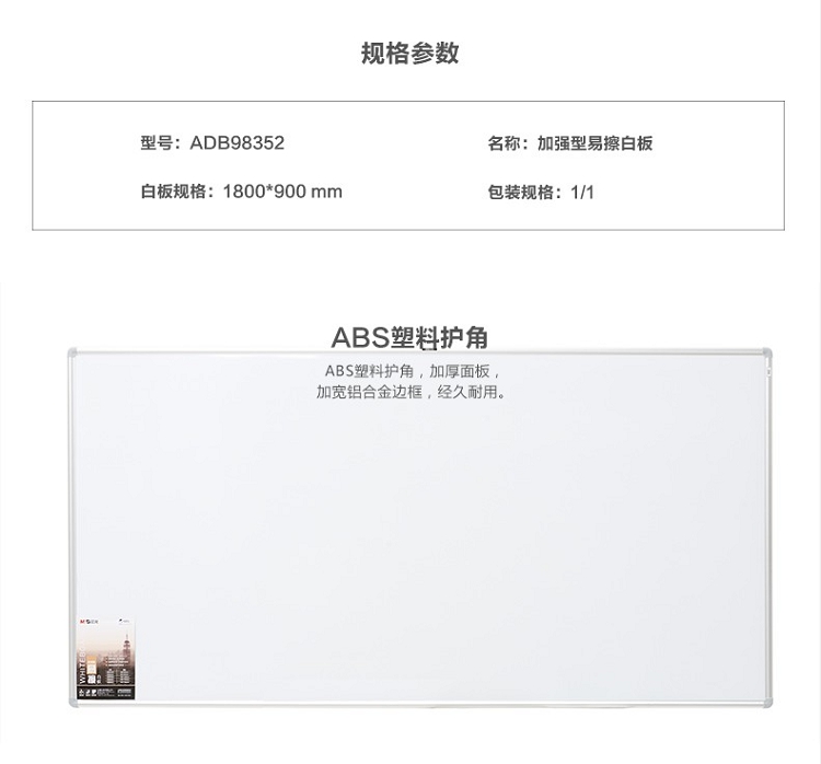 晨光(M&G) ADB98350 加強(qiáng)型易擦單面白板 不帶架子1200*900mm