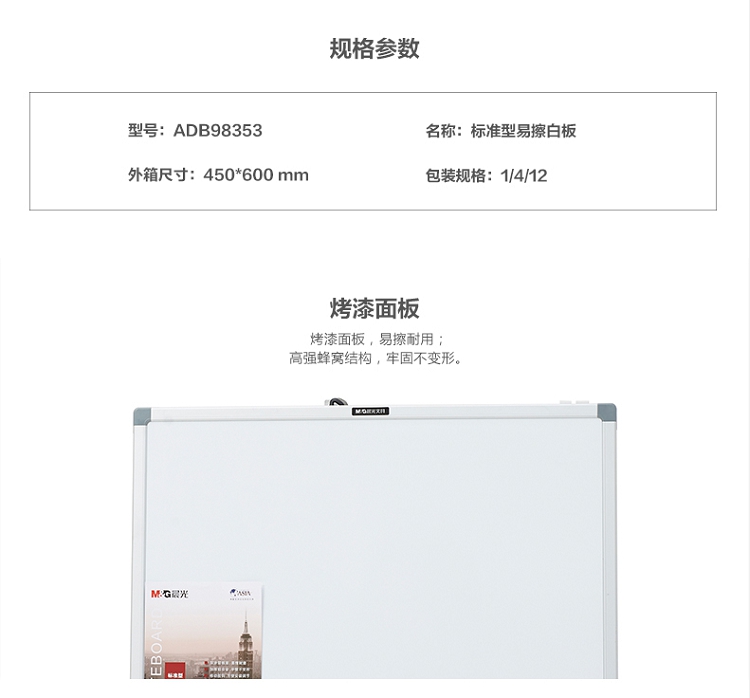 晨光(M&G) ADB98353 標(biāo)準(zhǔn)型易擦單面白板 不帶架子450*600mm
