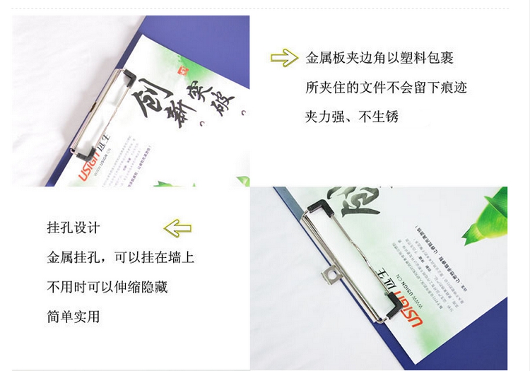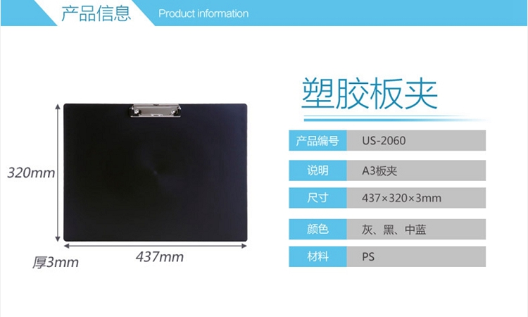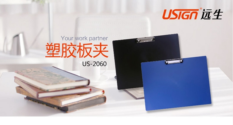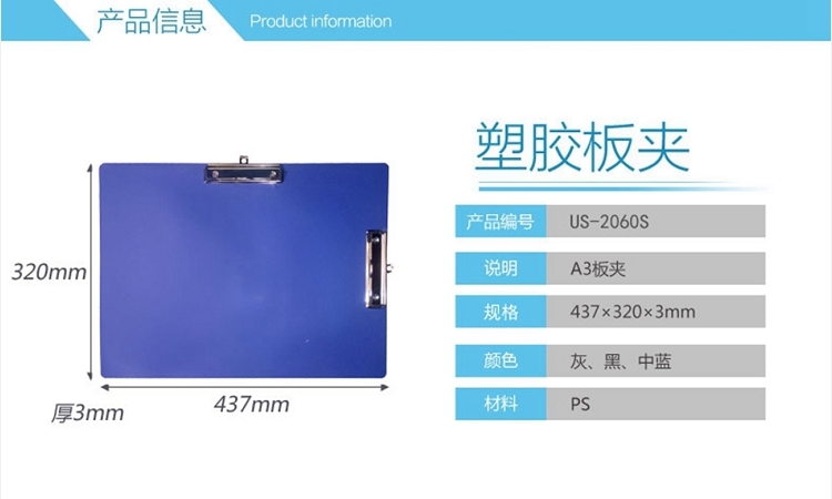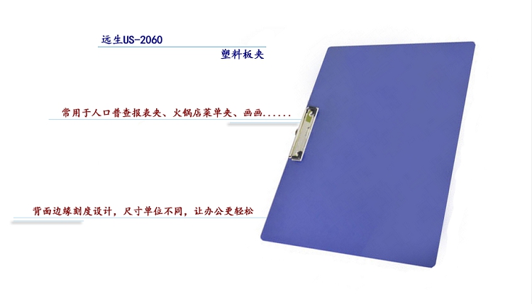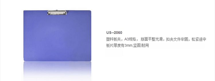 遠生(USign) US-2060 A3塑料板夾 A3板夾 書寫板夾 A3橫式板夾 雙夾資料夾 雙夾板夾 單夾板夾(藍色)