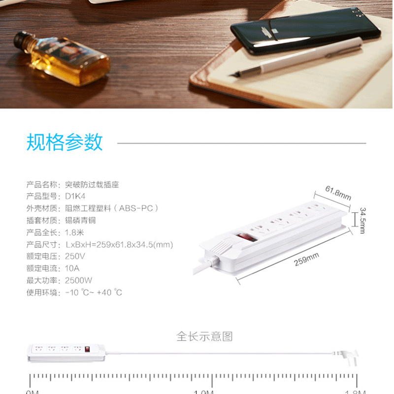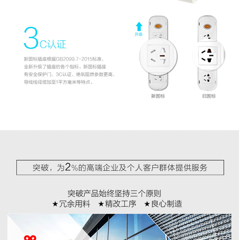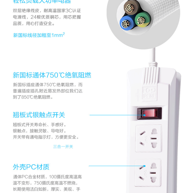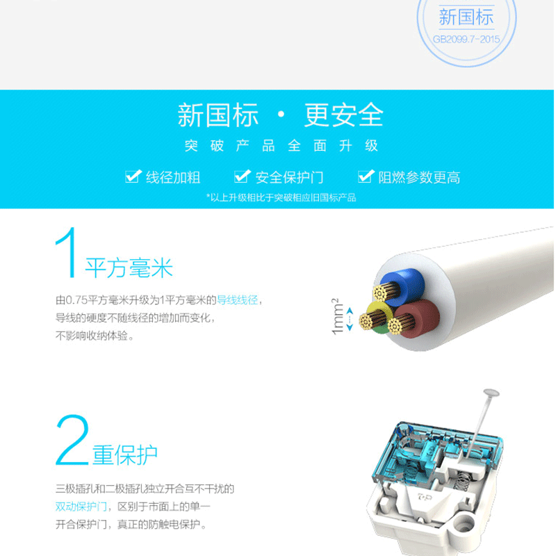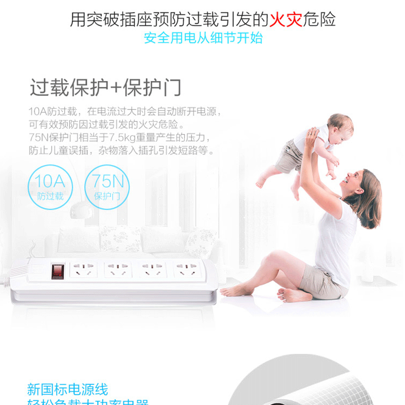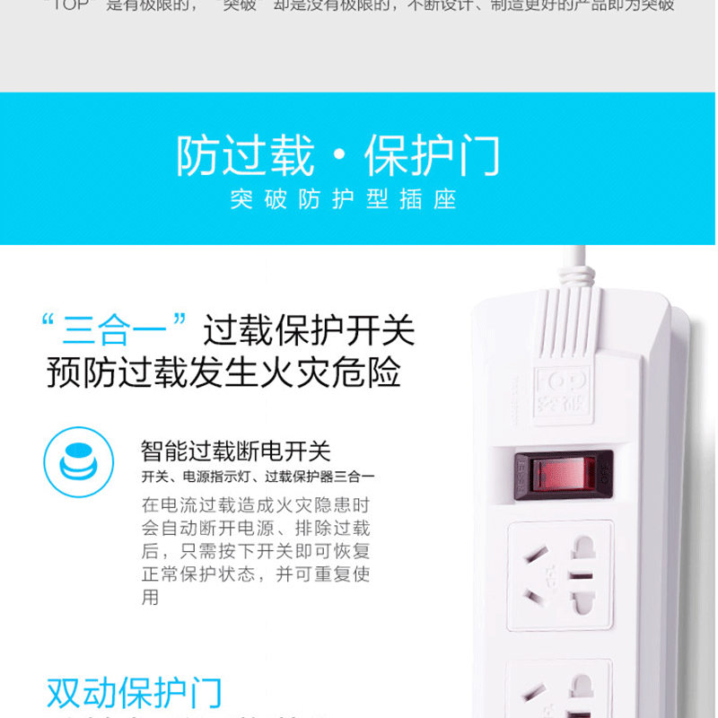 突破(TOP) 新國標電源插座/插線板/排插/接線板(三位總控1.8米)