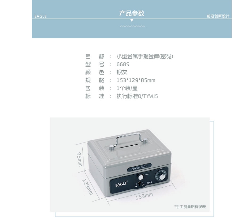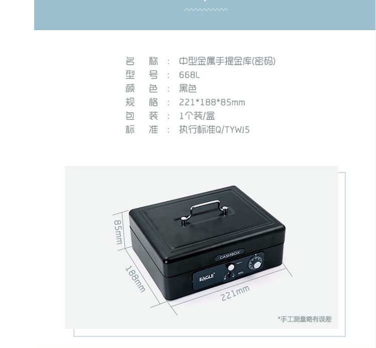 益而高(Eagle) 668S 小號(hào)密碼手提金庫(密碼+鎖)顏色隨機(jī)
