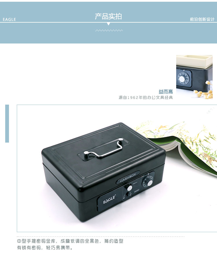 益而高(Eagle) 668M 中號密碼手提金庫(密碼+鎖)顏色隨機(jī)