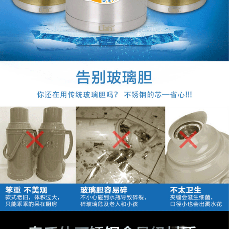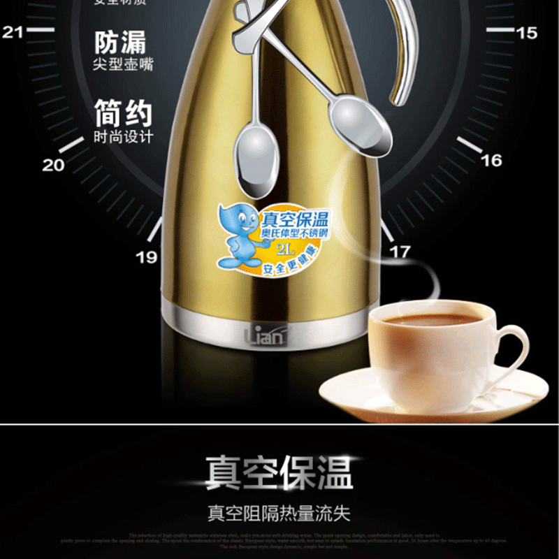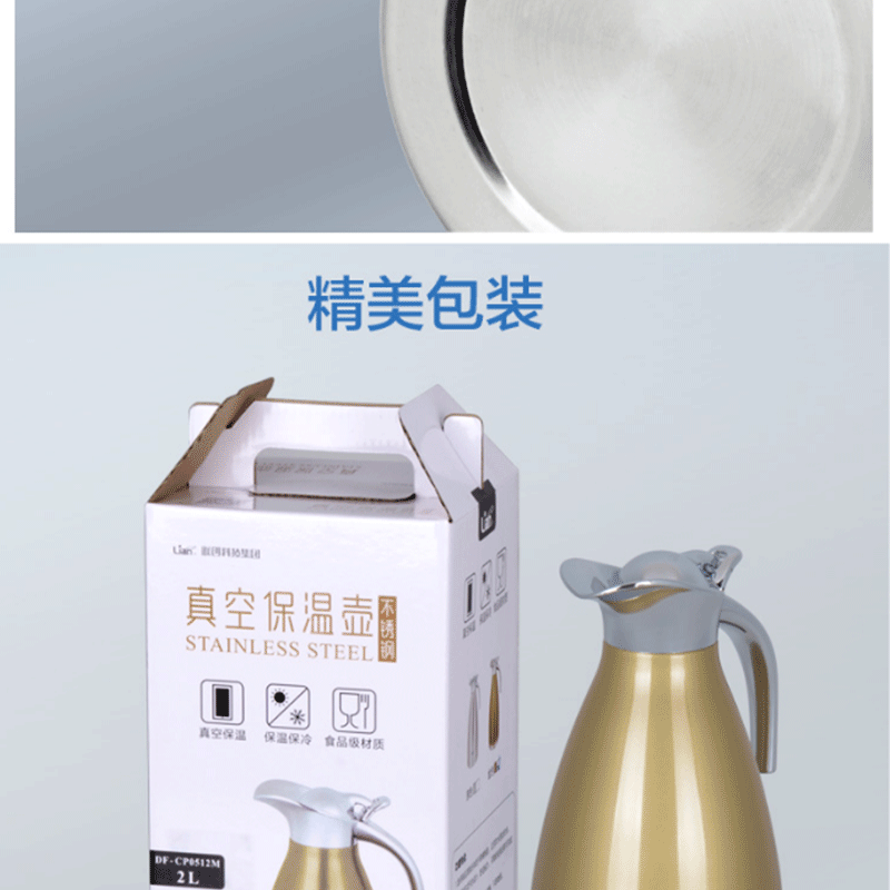聯(lián)創(chuàng)(Lianc) DF-CP0512M 不銹鋼真空保溫壺/開水壺 超長保溫 2L (金色)