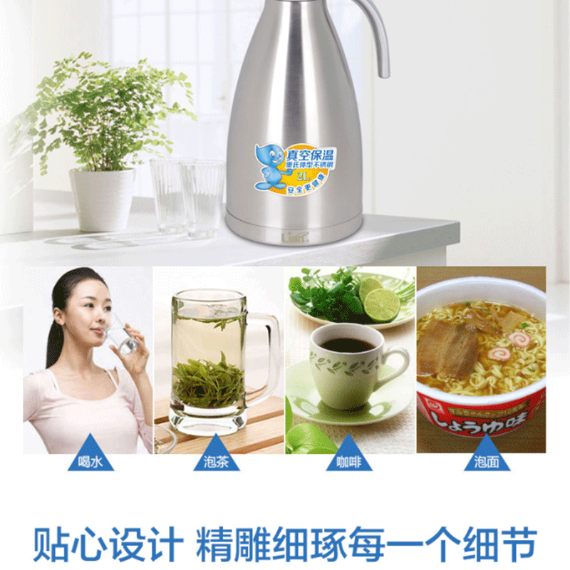 聯(lián)創(chuàng)(Lianc) DF-CP0512M 不銹鋼真空保溫壺/開水壺 超長保溫 2L(銀色)