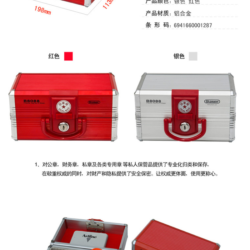 金隆興(Glosen) B8088 帶鎖鋁合金財(cái)務(wù)印章盒/公章收納盒/印章收納盒